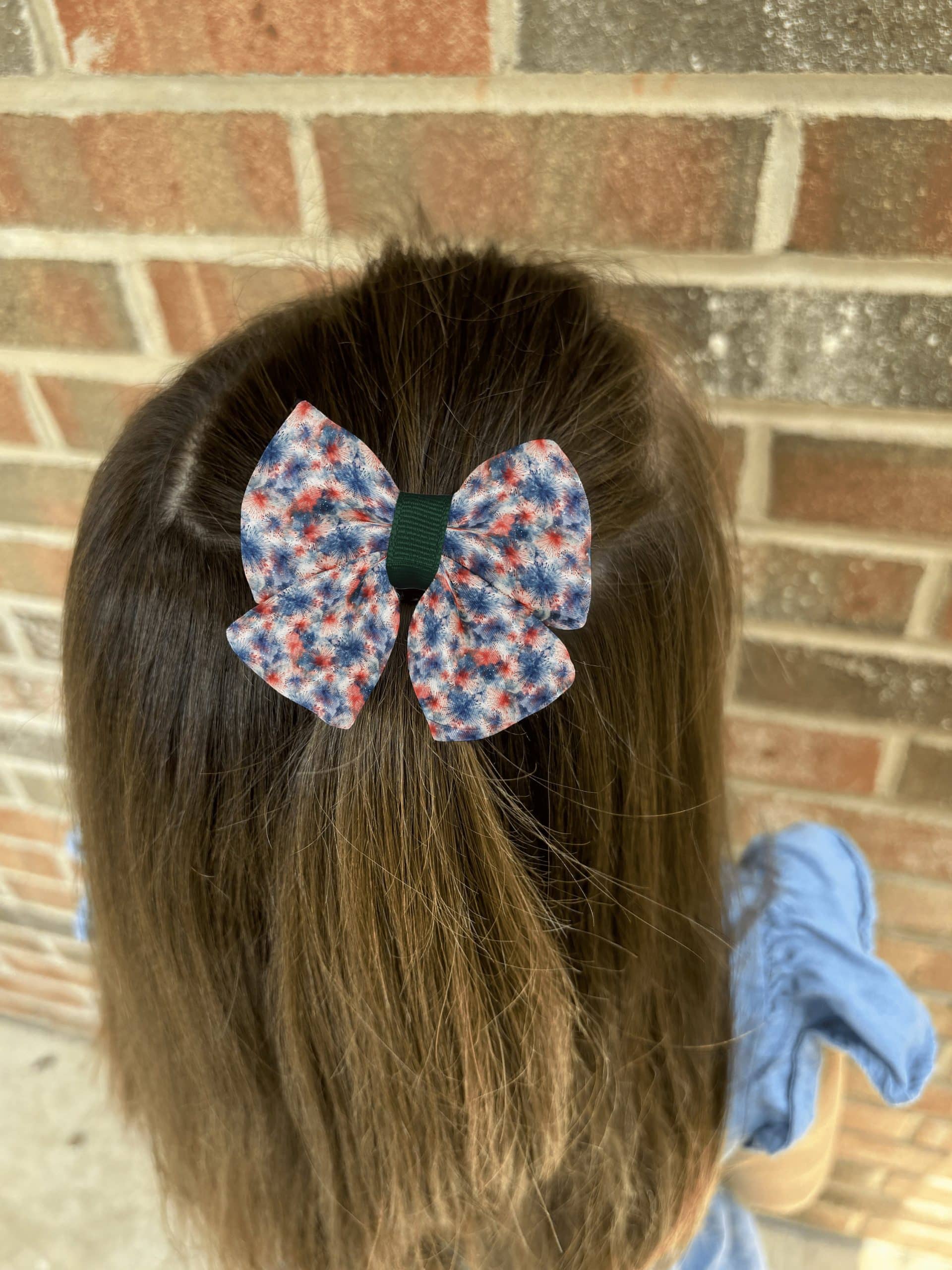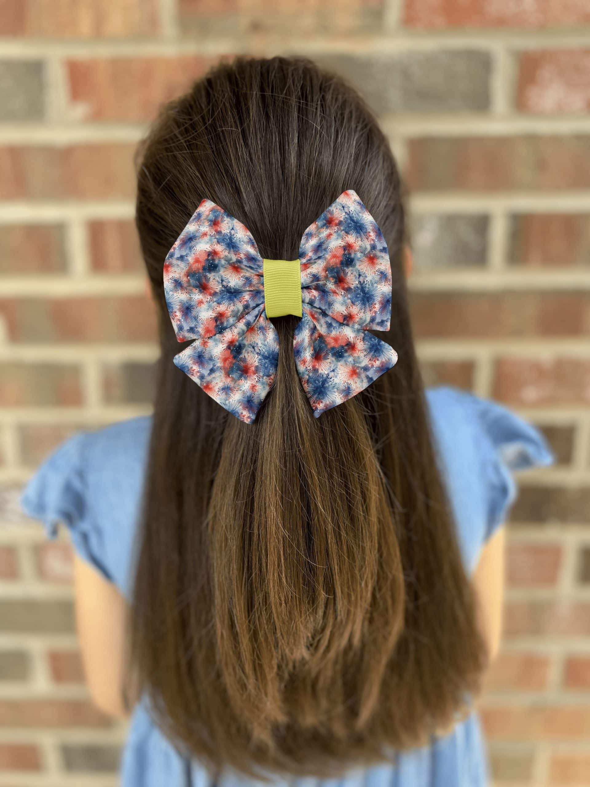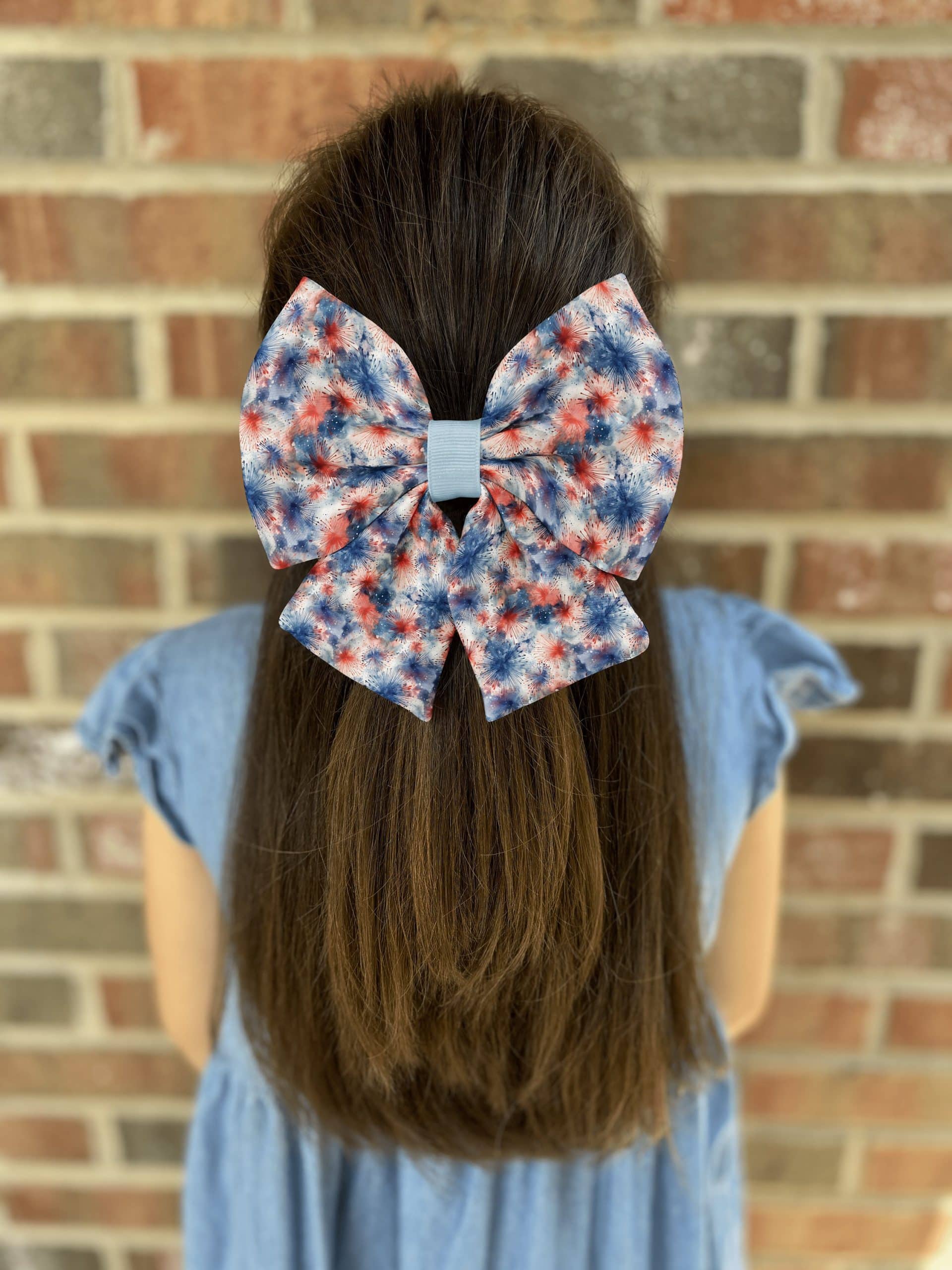 Celebrate the 4th of July with our Patriotic Fireworks Hair Bow for Girls and Women. Crafted from high-quality polyester fabric, this bow is water-resistant, quick-drying, and designed to have a puffy, full appearance. Perfect for adding a festive touch to any outfit.