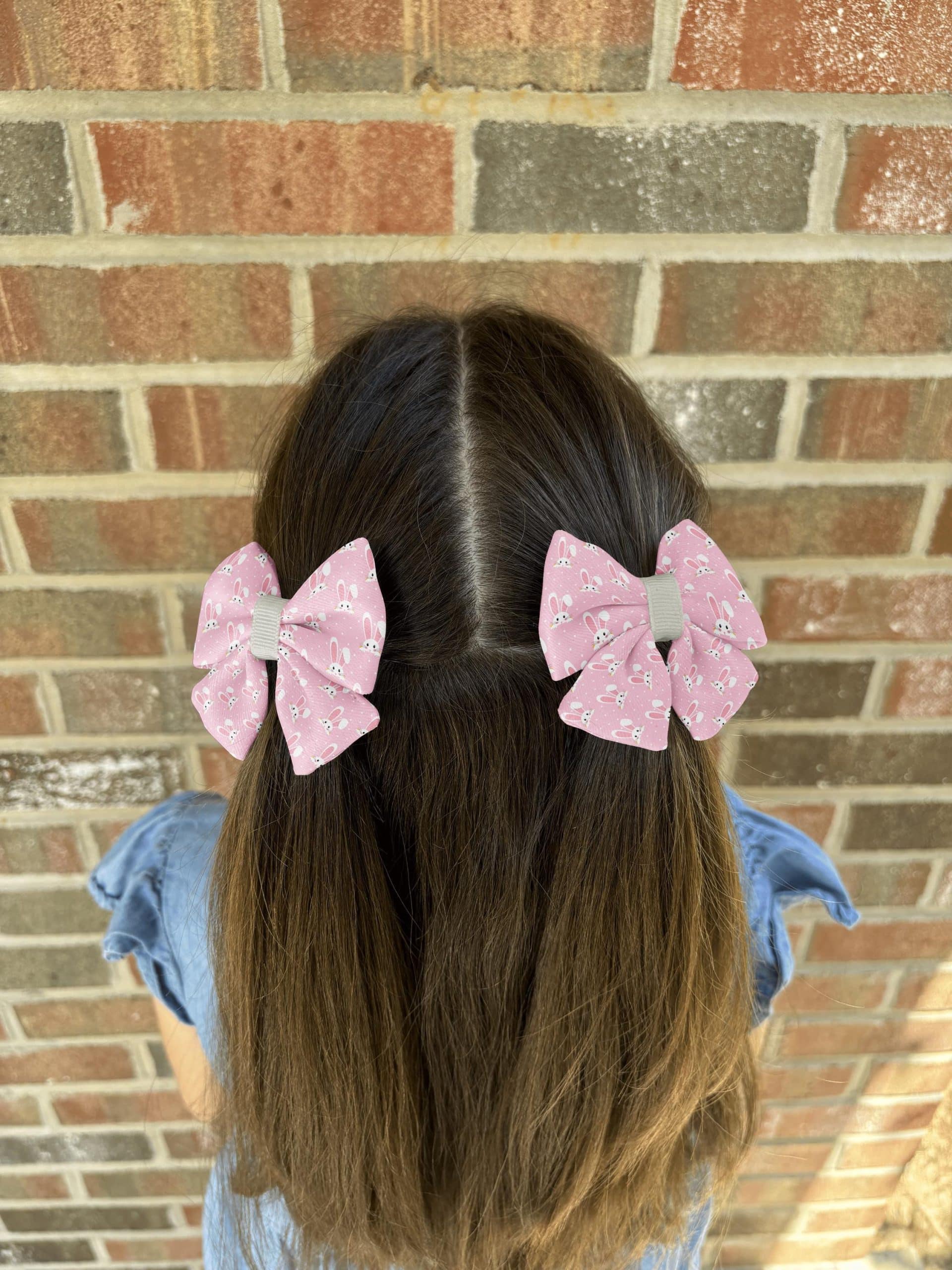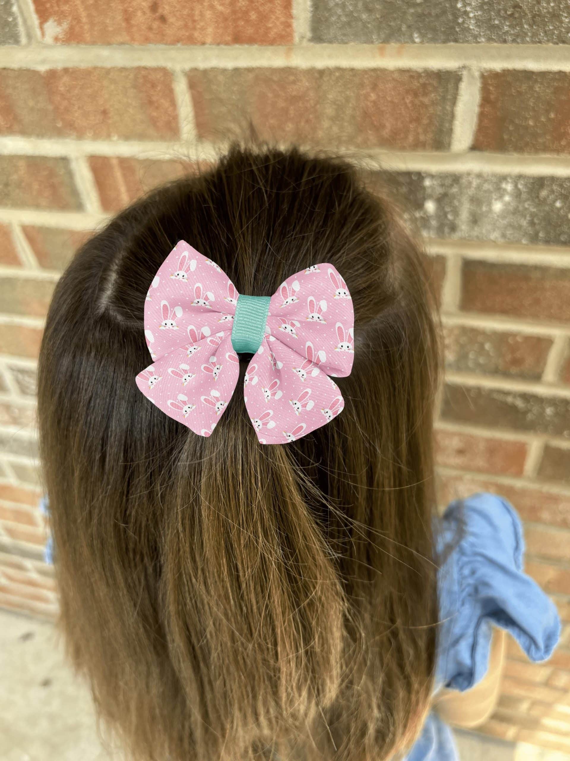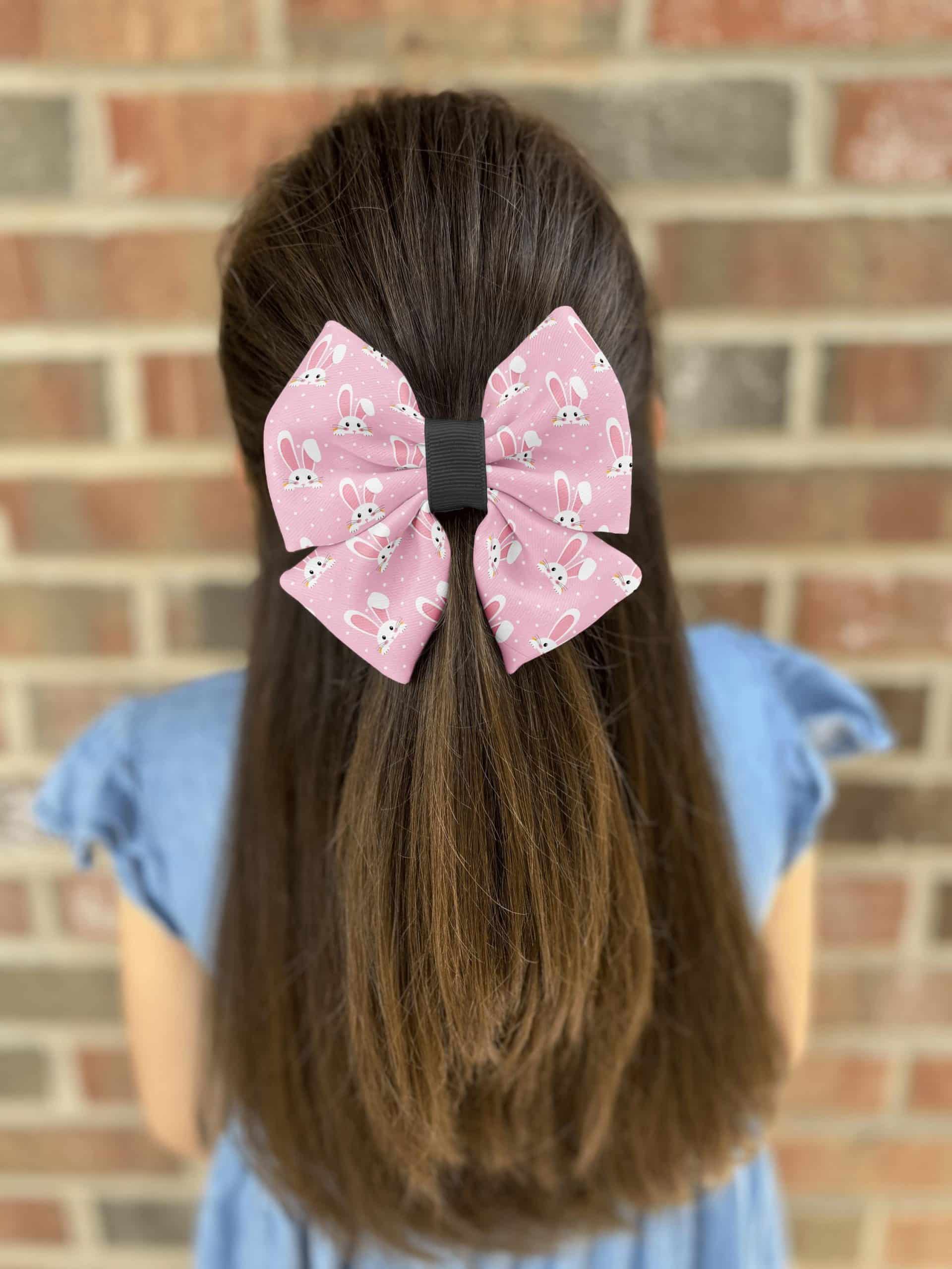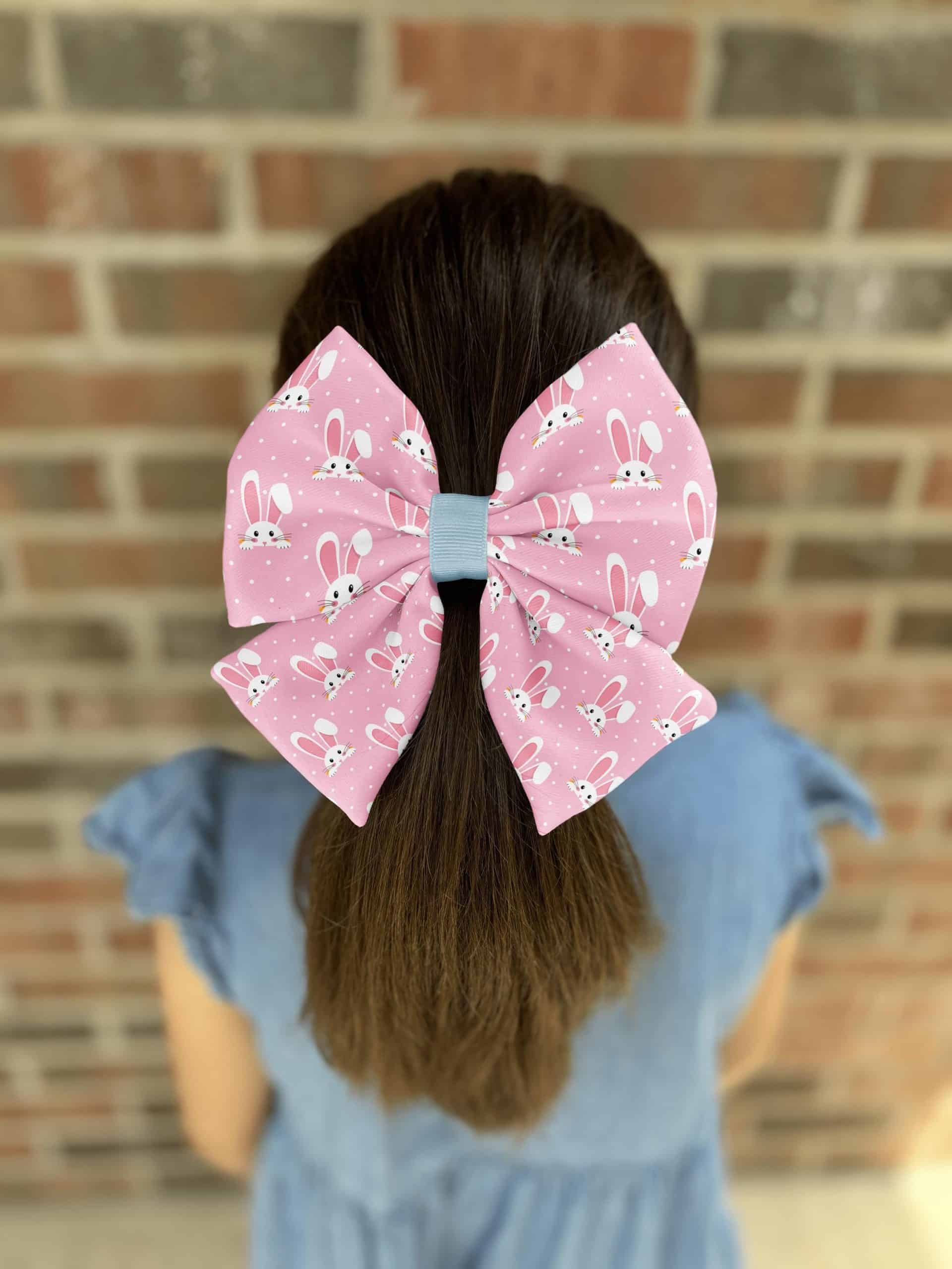 Our Pink Bunny Hair Bow is the perfect accessory for girls and women who want to add a touch of fun and charm to their outfits. Featuring a delightful pink background adorned with cute bunny faces, this bow is handmade from high-quality polyester fabric, ensuring a puffy and full appearance that stands out. The durable alligator clip provides a secure hold, making it ideal for all-day wear. Whether for an Easter celebration or a playful everyday look, this bow is sure to become a favorite accessory in your collection.