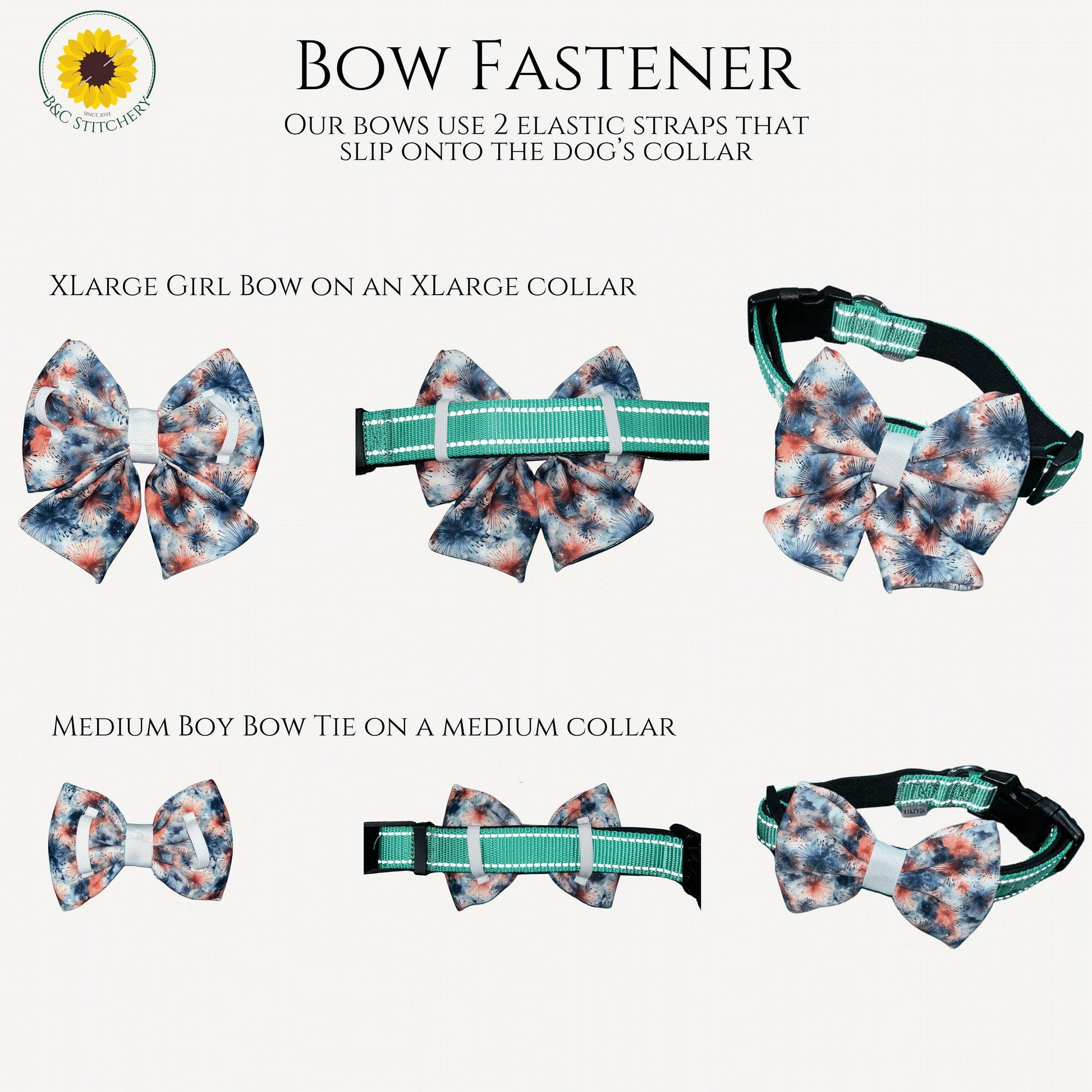 • 𝐒𝐥𝐢𝐩-𝐎𝐧 𝐃𝐞𝐬𝐢𝐠𝐧: Easy to use elastic loops make this bow simple to attach to any collar.