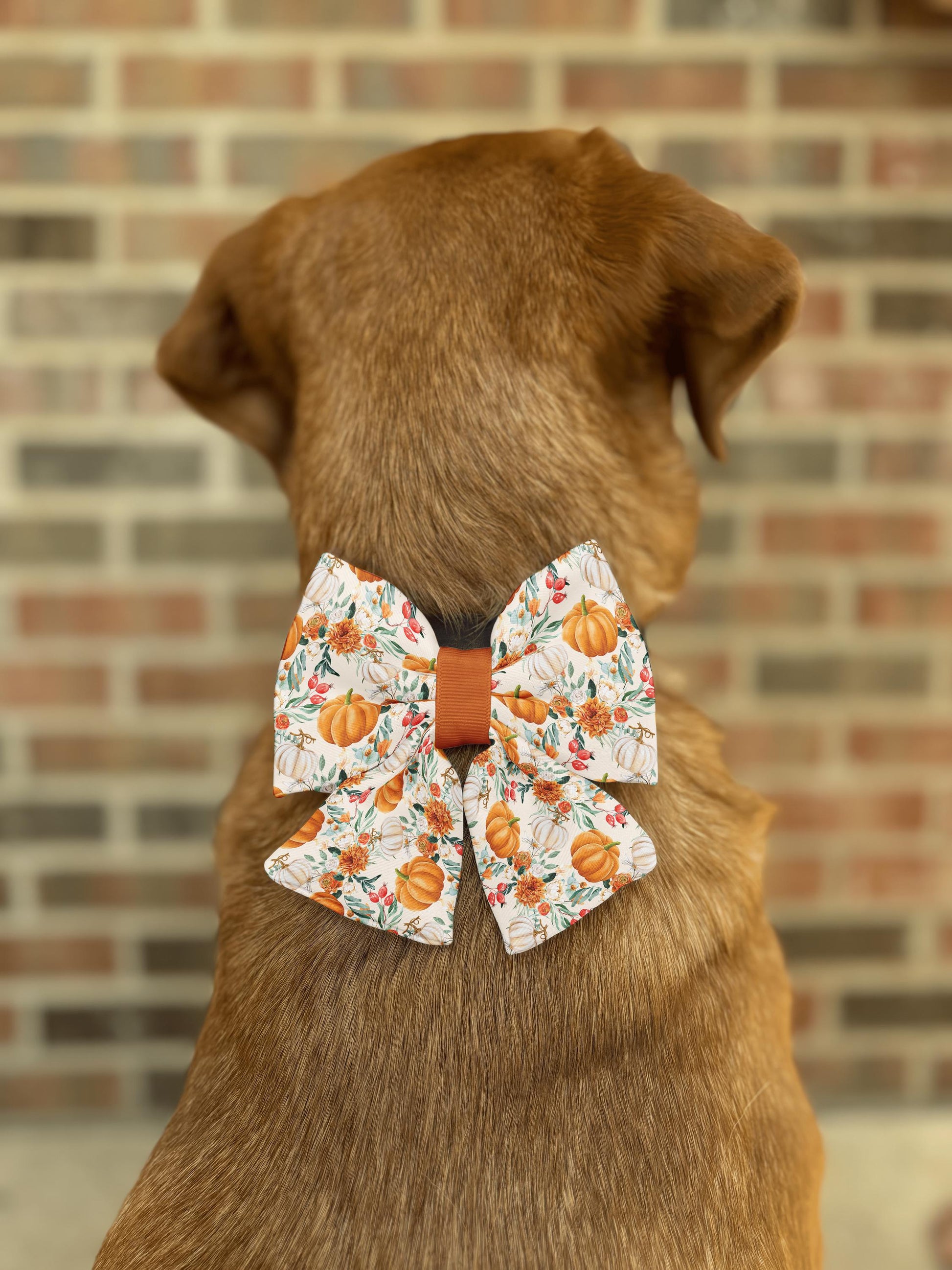 Autumn Bloom Pumpkin Bow Tie with Floral Design • Fall Pets Slip-On Collar Accessory • Dog Bow Tie • Cat Bow Tie • Handmade