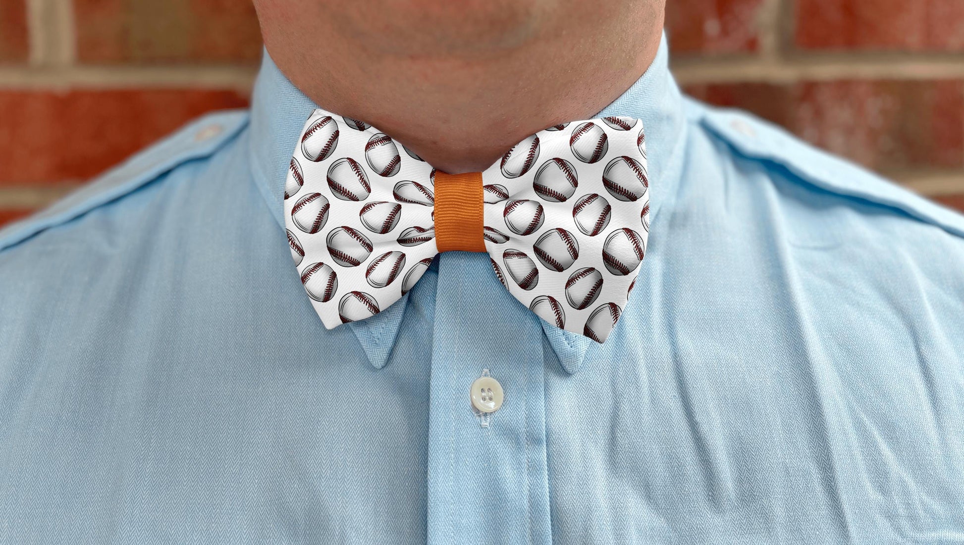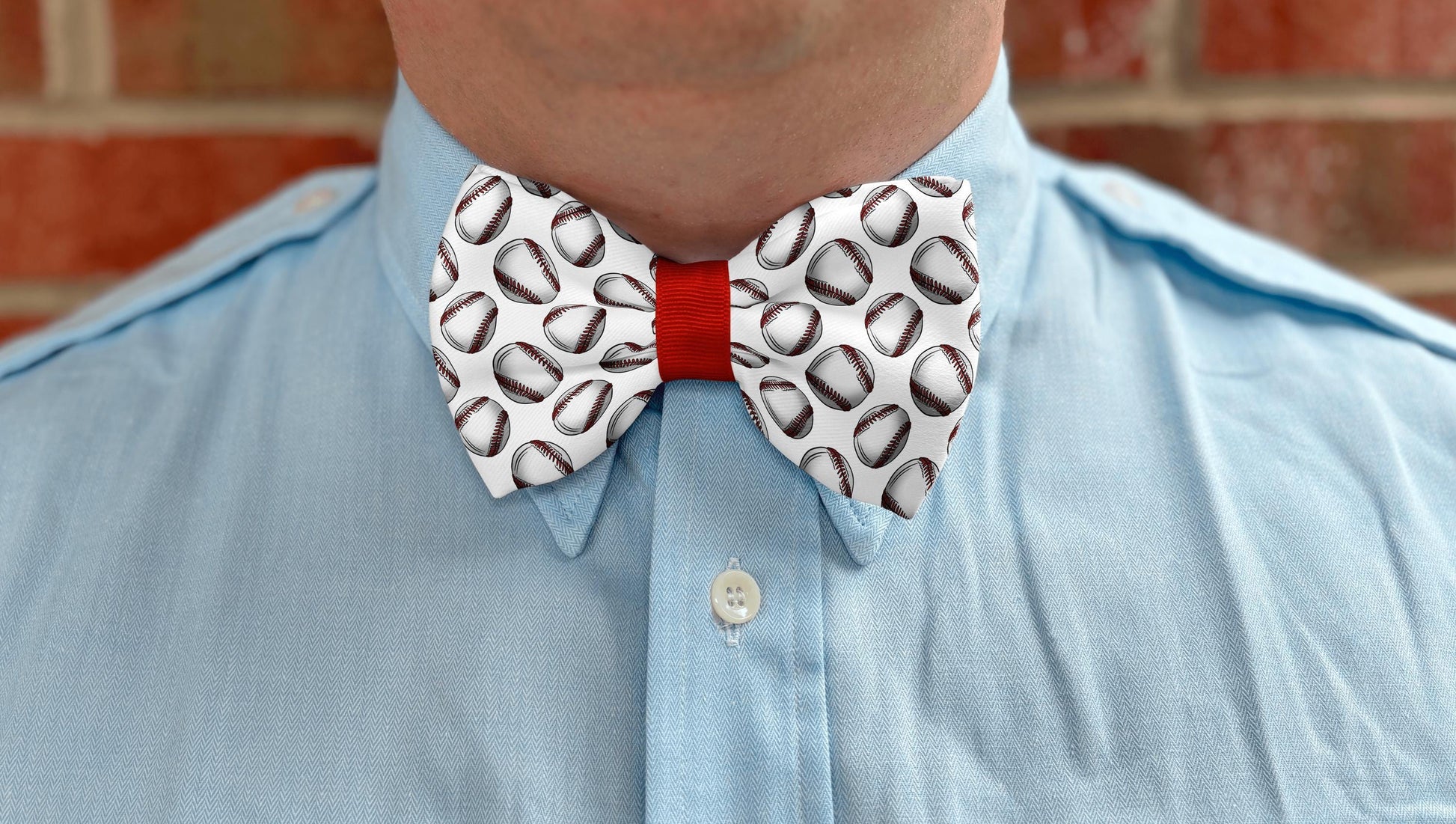 Step up your style game on and off the field with our "Home Run Baseballs" bow tie, featuring a classic baseball pattern accented by bright red stitching on a crisp white backdrop. Ideal for boys and men, this sporty accessory is crafted from high-quality polyester, ensuring durability and a full, eye-catching appearance. With 21 vibrant ribbon color options, you can customize this bow tie to match any occasion—be it a game day or a special event. Embrace the spirit of America's favorite pastime and make a statement with this unique bow tie that exudes both charm and energy.