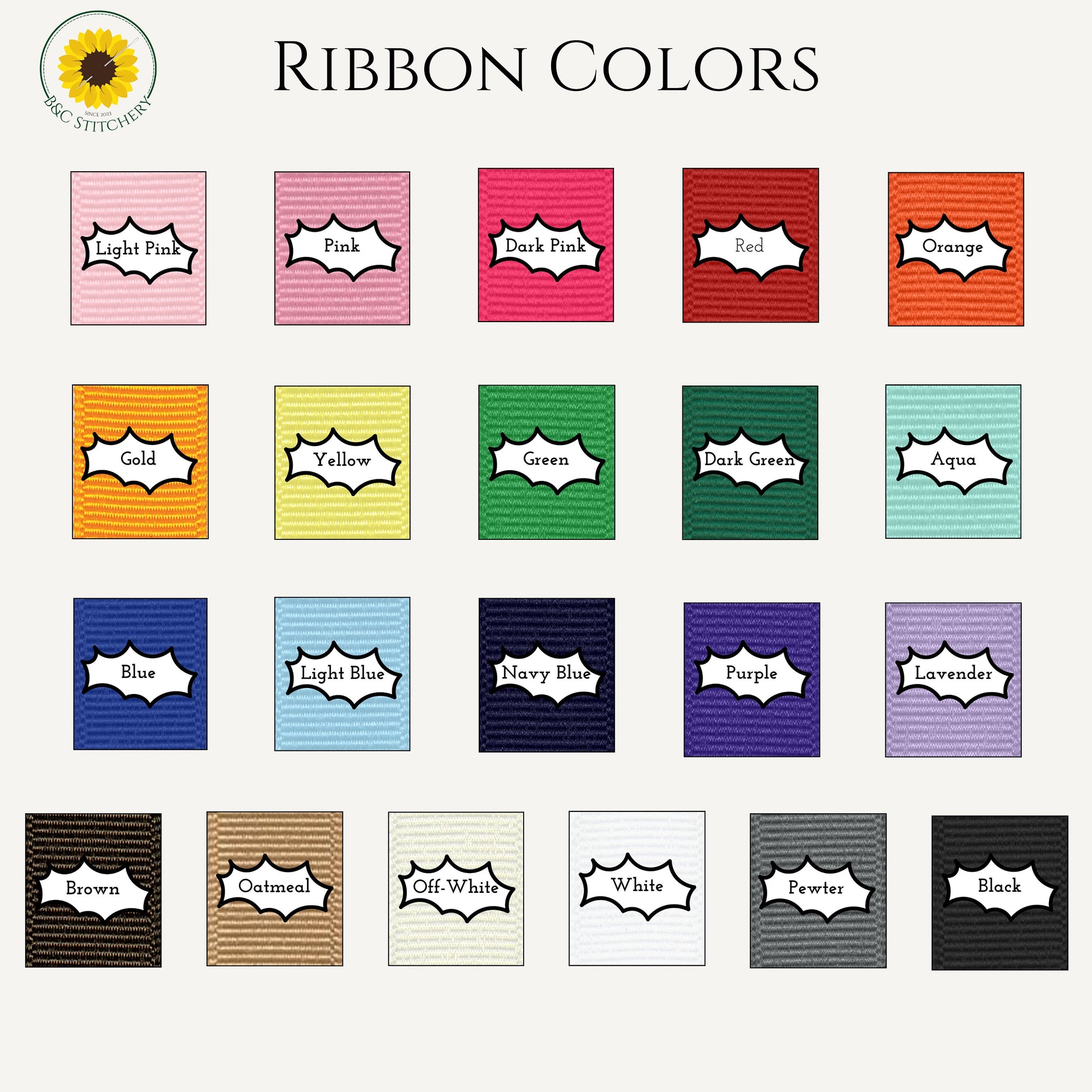 • 𝐕𝐚𝐫𝐢𝐞𝐭𝐲 𝐨𝐟 𝐂𝐨𝐥𝐨𝐫𝐬: Choose from 21 vibrant ribbon colors including Black, White, Brown, Oatmeal, Off-White, Pewter, Blue, Light Blue, Navy Blue, Aqua, Purple, Lavender, Light Pink, Pink, Dark Pink, Red, Yellow, Orange, Gold, Green, and Dark Green.