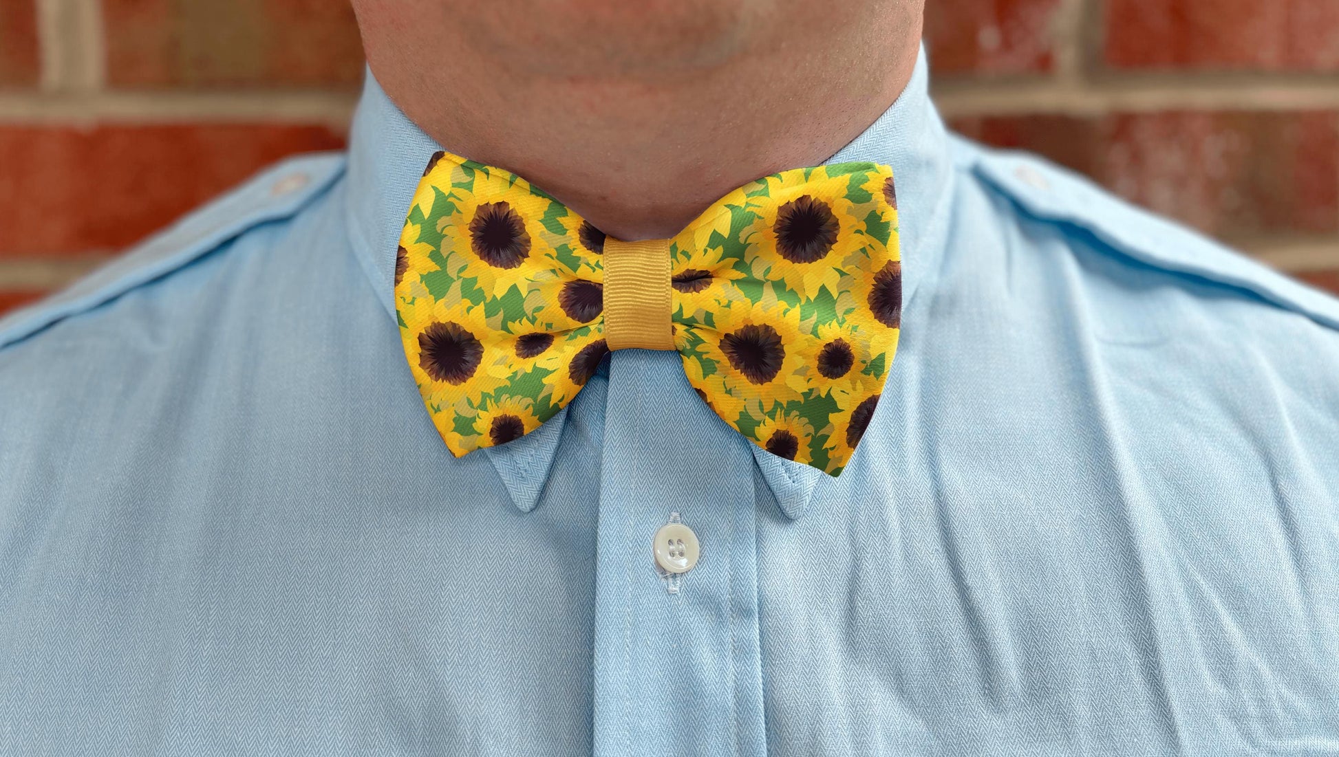 Sunflower Pattern Bow Tie with Adjustable Elastic Strap in 21 Ribbon Colors • Boy Bow Tie • Men's Bow Tie • Handmade