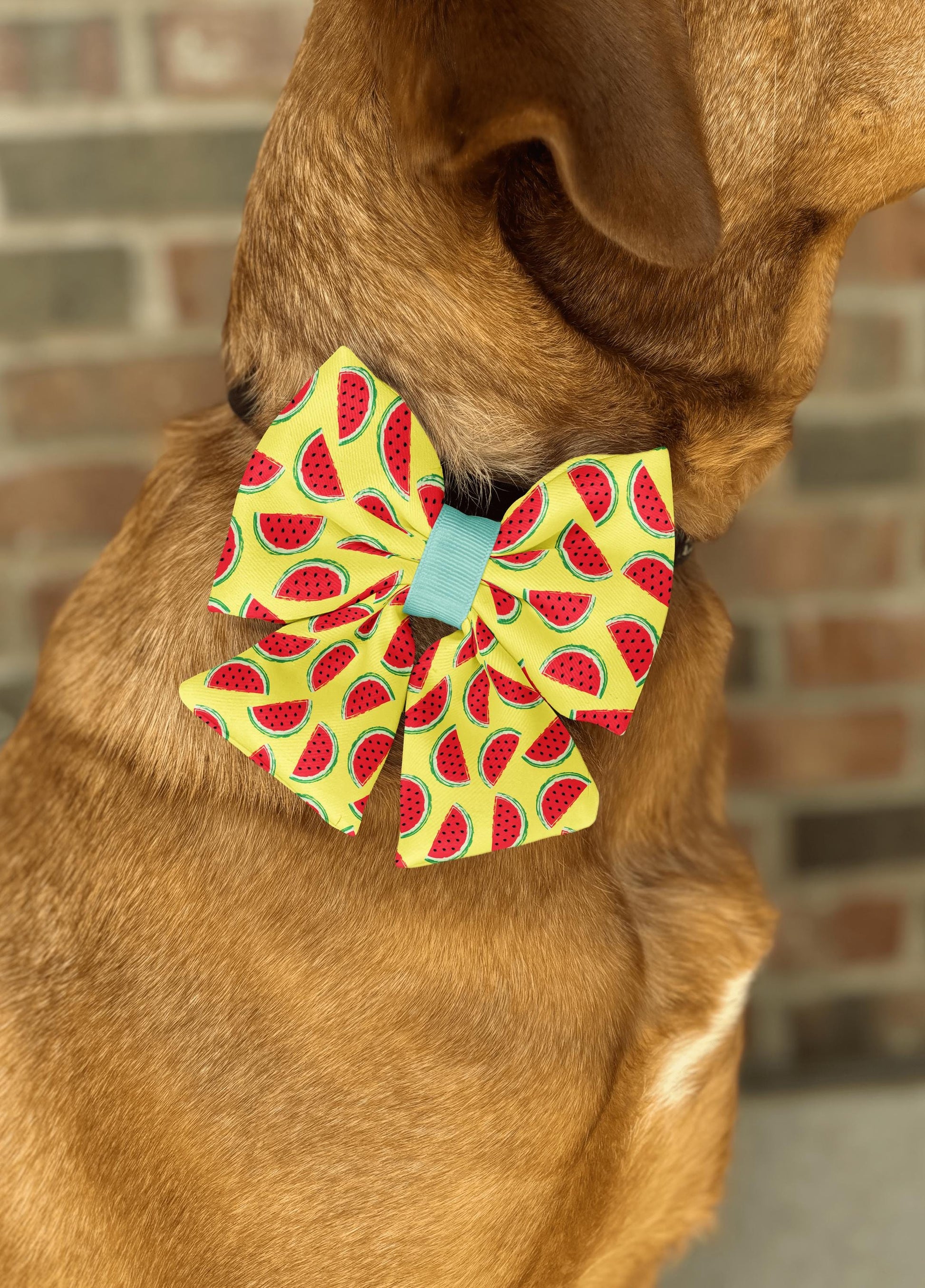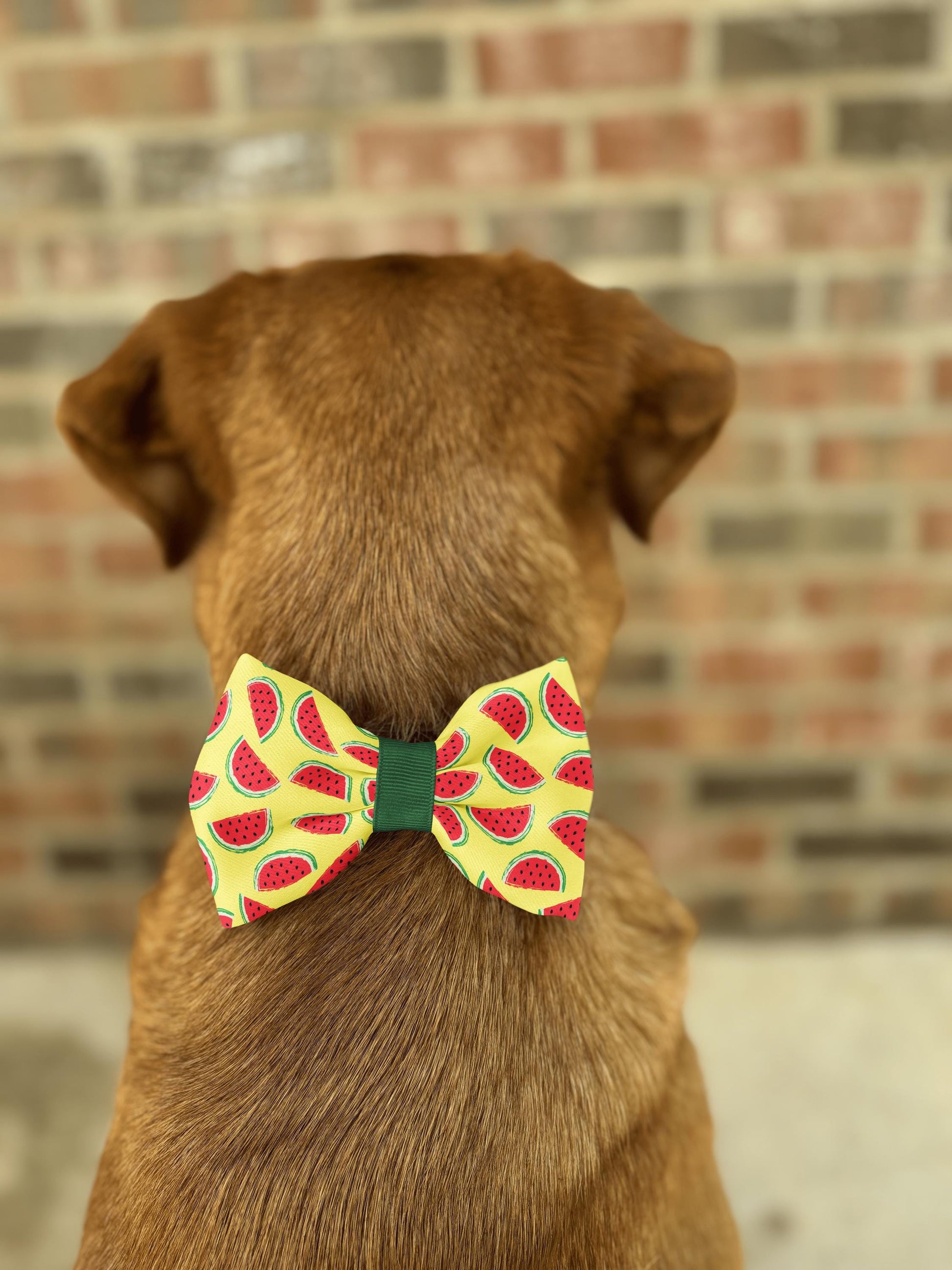 Watermelon Dog Bow Tie • Bright Yellow Background with Watermelon Slices • Slip-On Design • Dog Bow Tie • Cat Bow Tie • Handmade