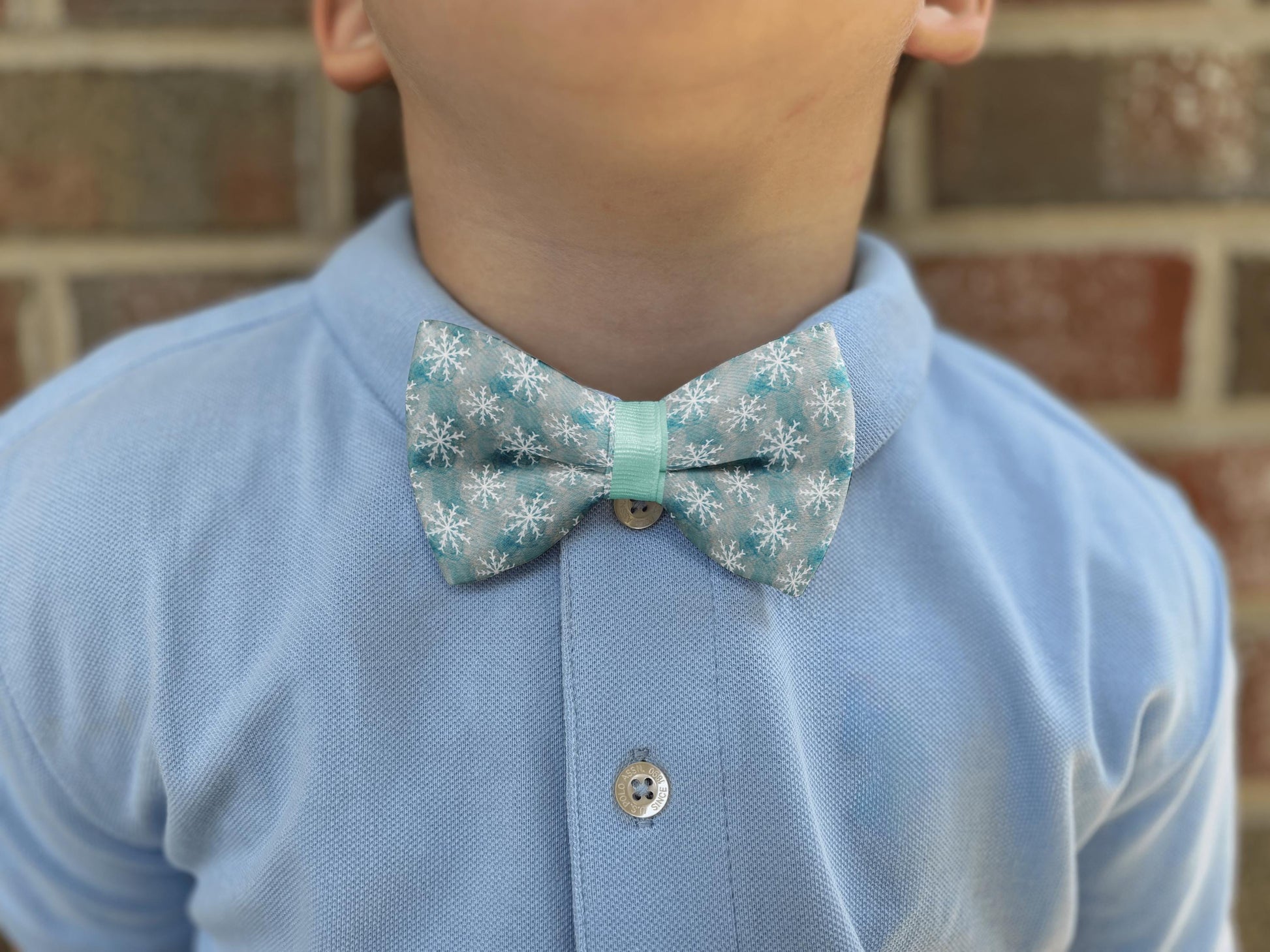 Winter Snowflakes Bow Tie for Boys & Men • 21 Ribbon Colors • Elegant Watercolor Blue and White • Boy Bow Tie • Men's Bow Tie • Handmade